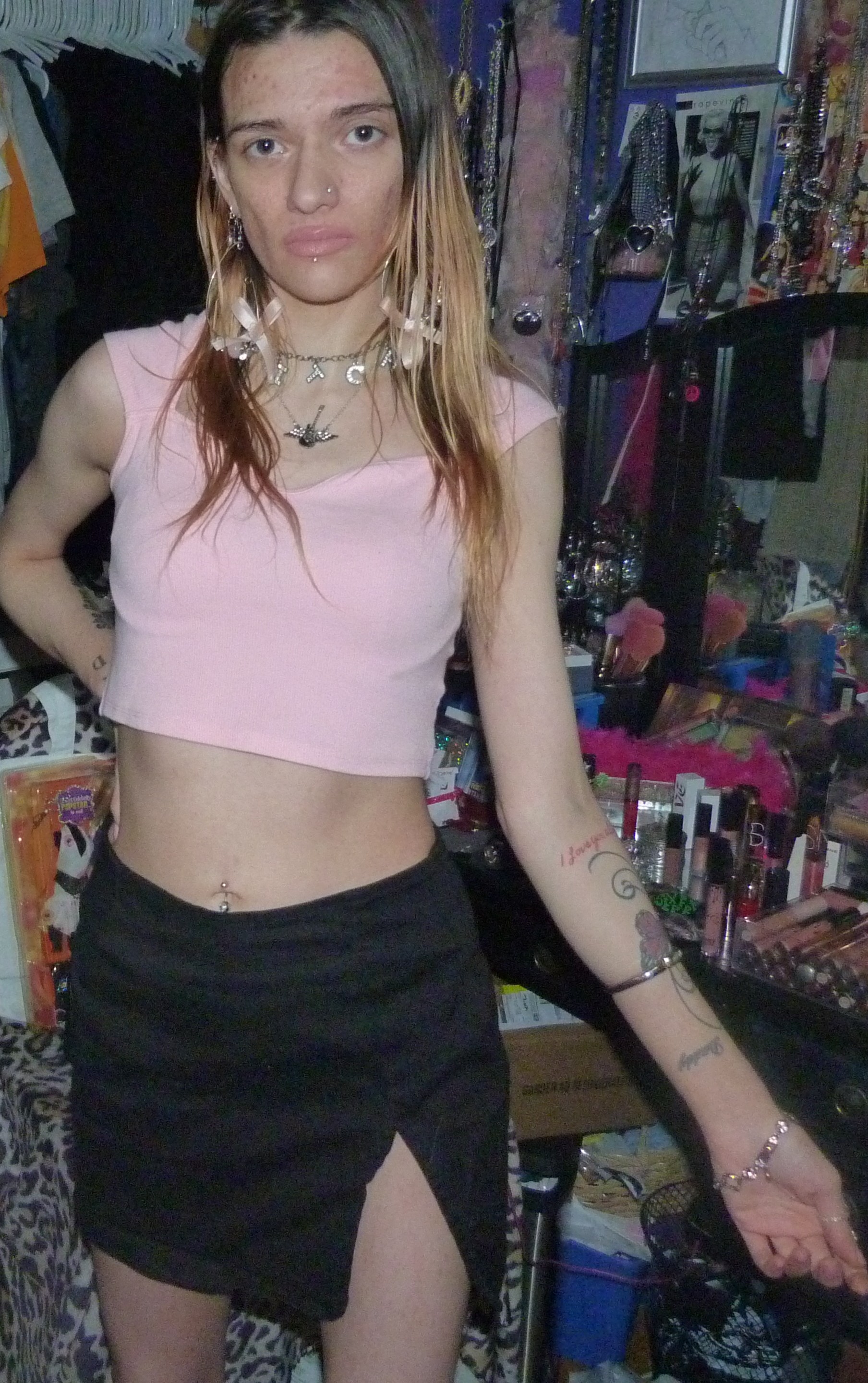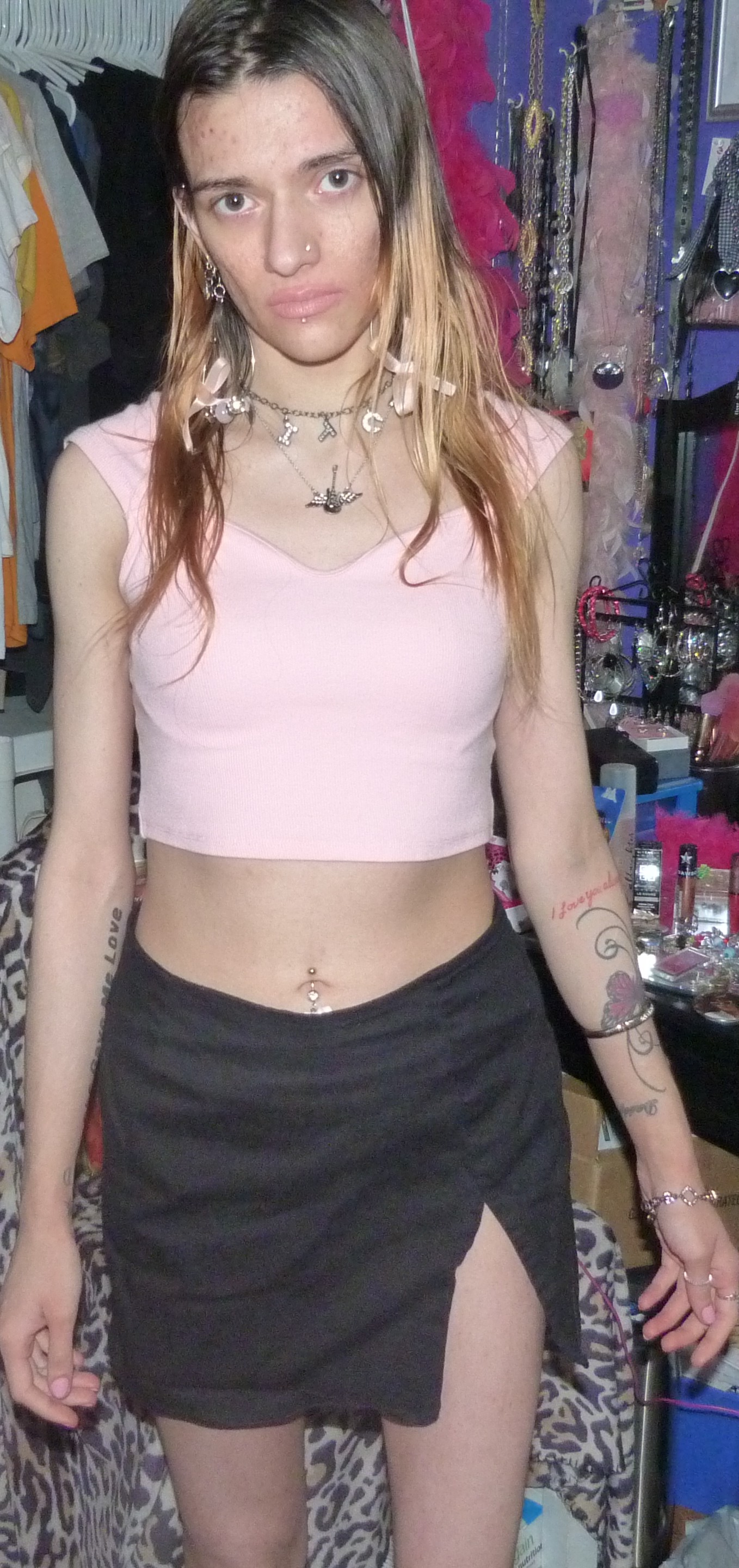 HERE IS THIS NEW PHOTOSHOOT I DID! WITH THIS CUTE OUTFIT THAT I GOT – ON DEPOP. I GOT THIS SHIRT FOR FREE + IT LOOKS SUPER CUTE WITH A BLACK SKIRT, THAT I GOT WITH!
