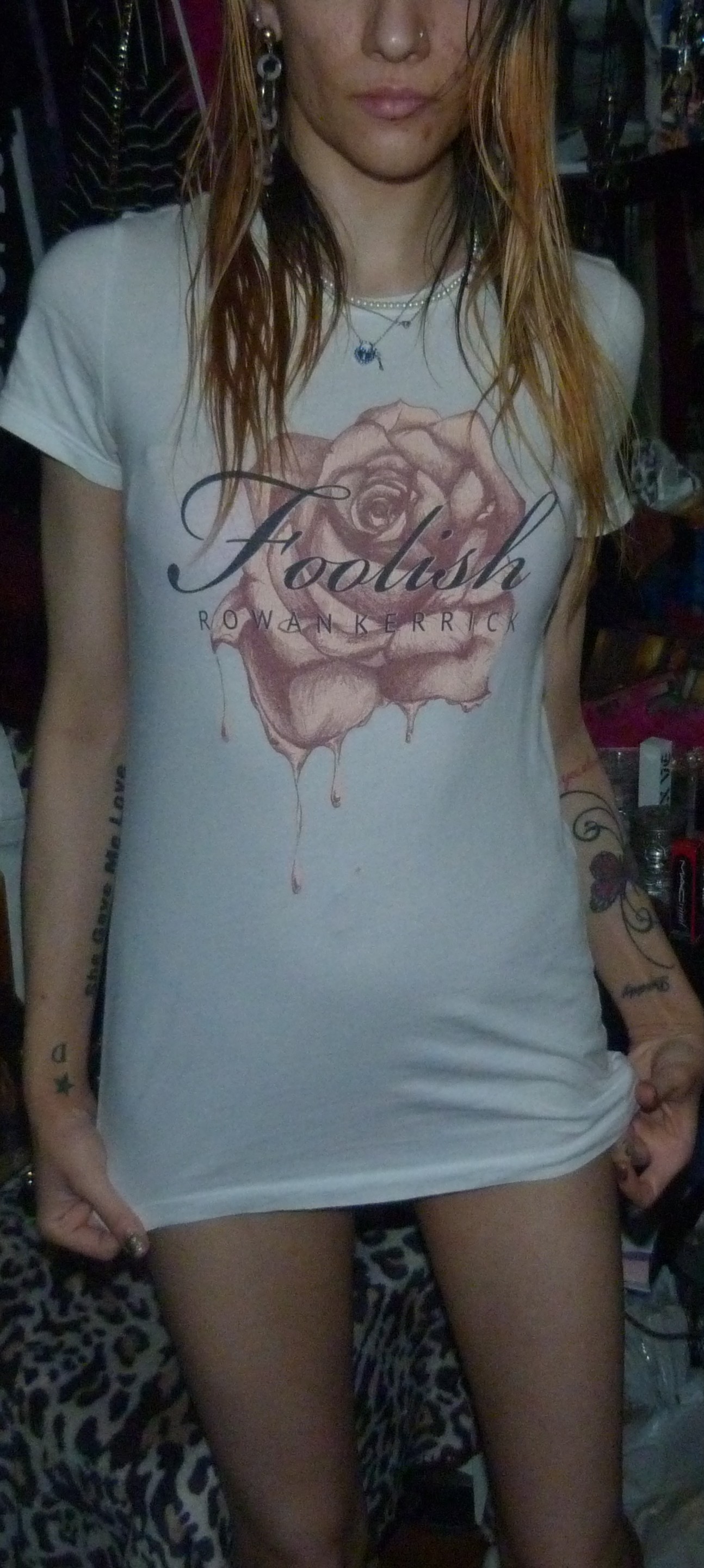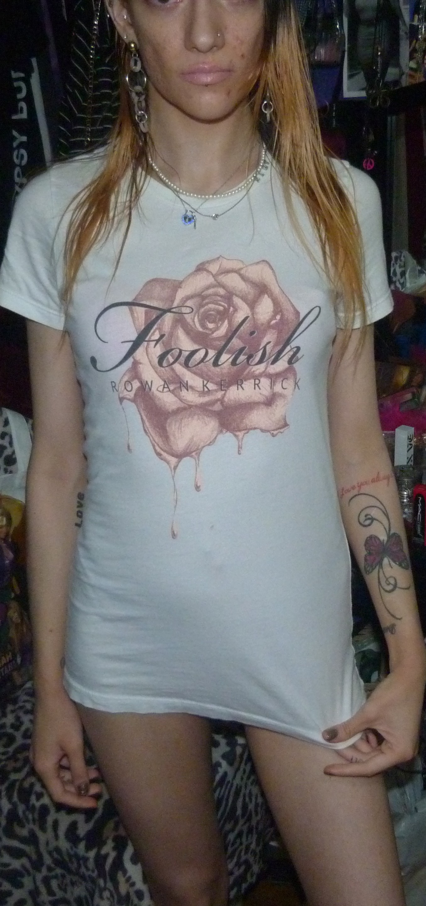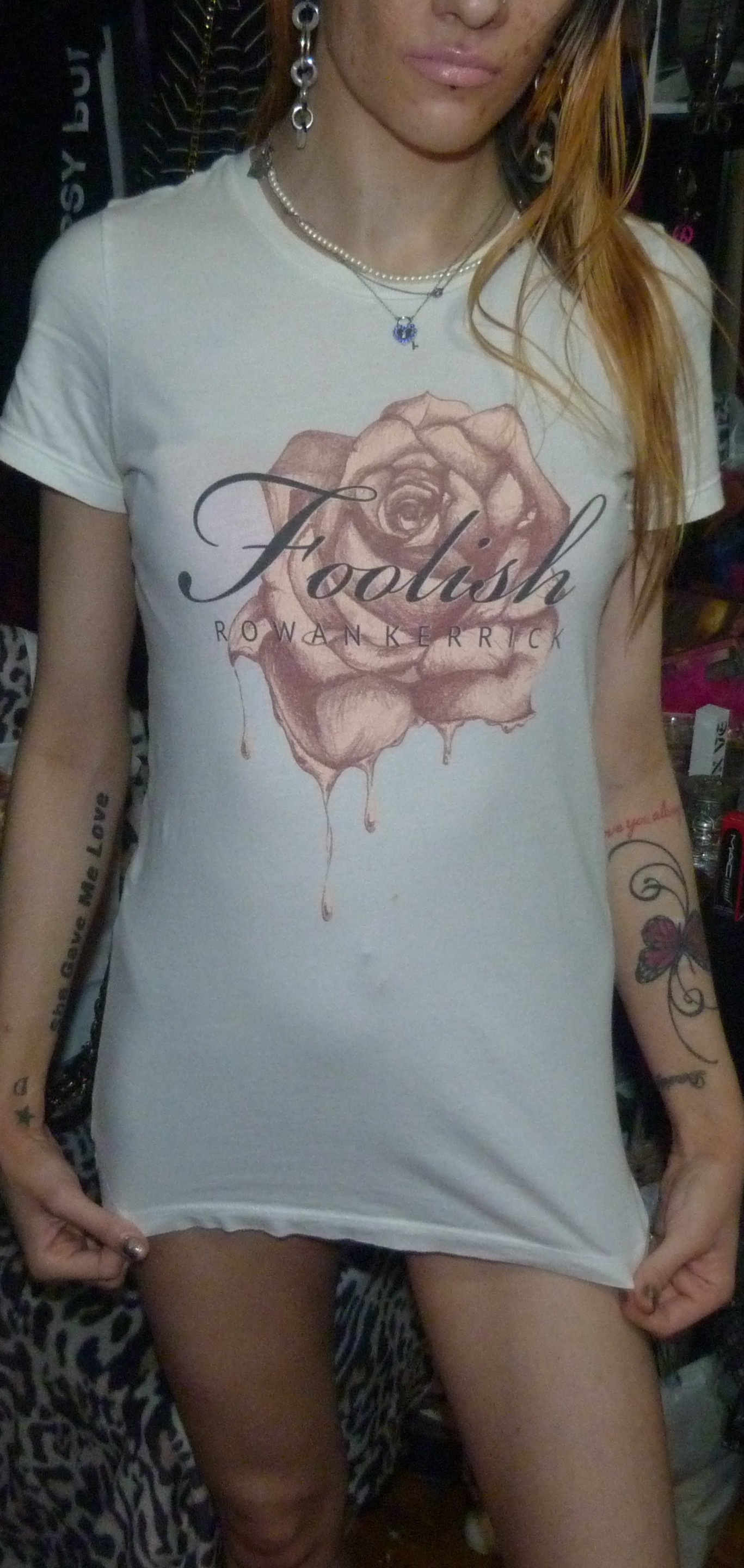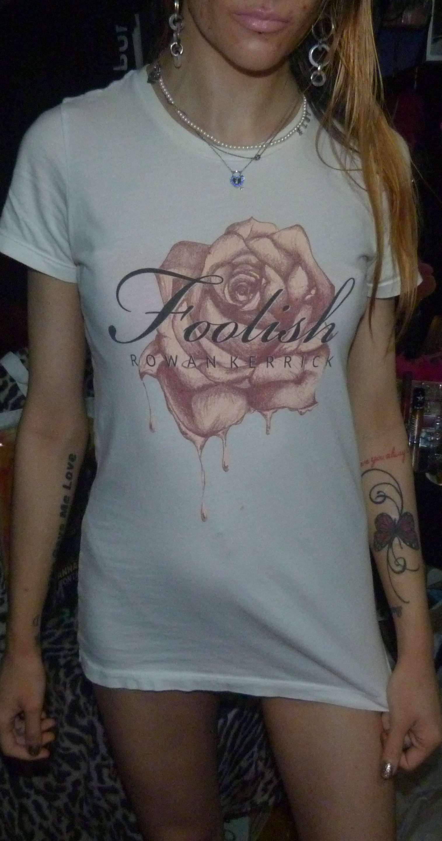 SO HERE’S THE 6TH OR 7TH POST IN MY 2019 SERIES THIS IS A SHIRT THAT SAYS FOOLISH BY ROWAN KERRICK ON IT +WITH A PRETTY PINK ROSE ON THAT I WORE REALLY WELL IN 2019!