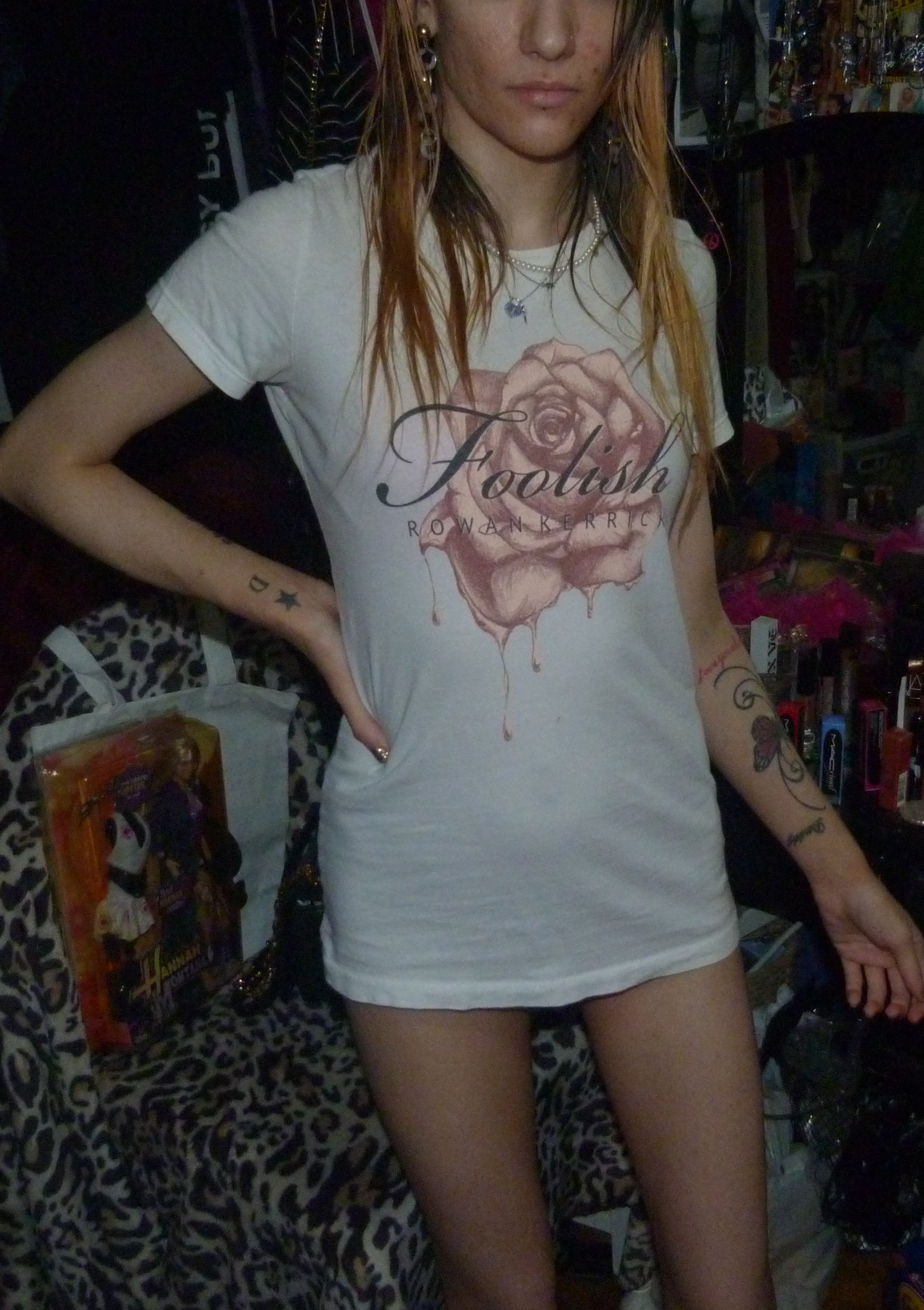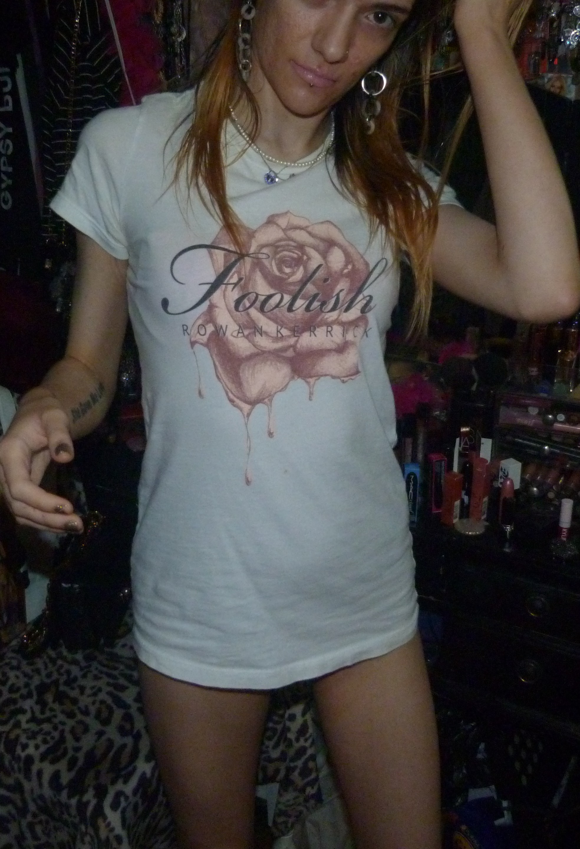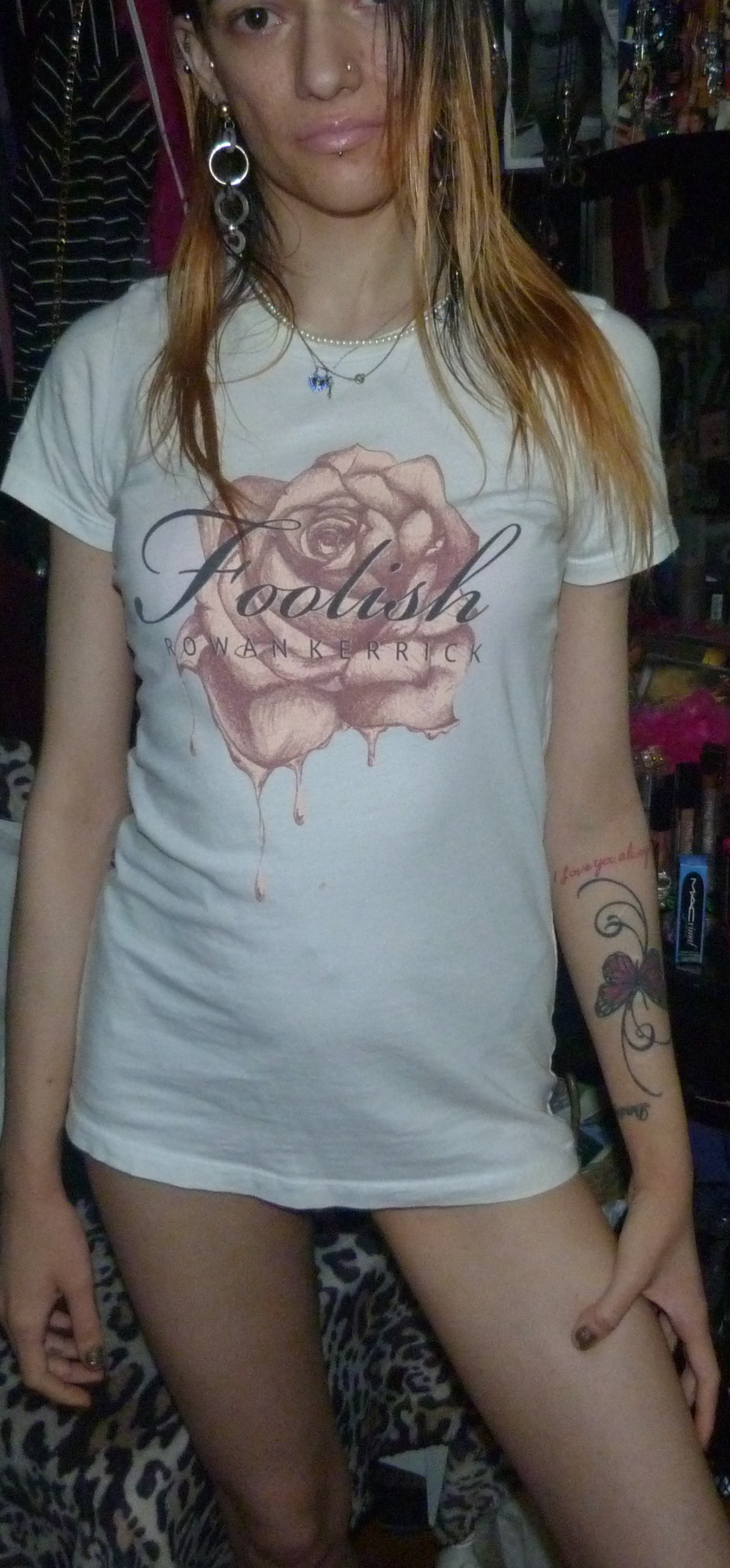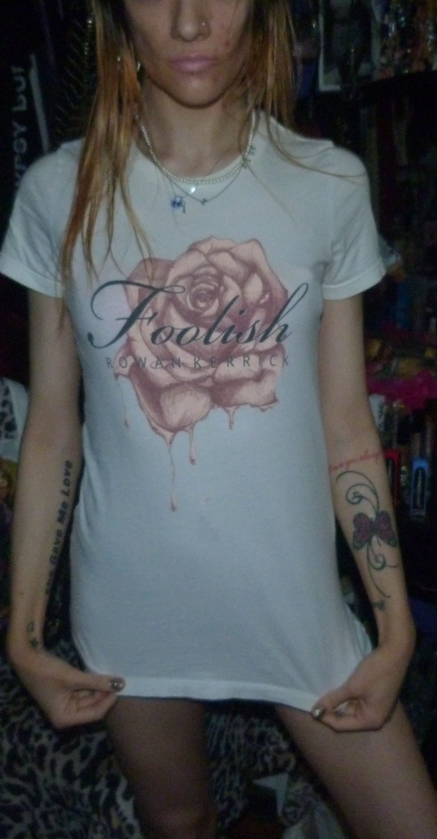 SO HERE’S THE 6TH OR 7TH POST IN MY 2019 SERIES THIS IS A SHIRT THAT SAYS FOOLISH BY ROWAN KERRICK ON IT +WITH A PRETTY PINK ROSE ON THAT I WORE REALLY WELL IN 2019!