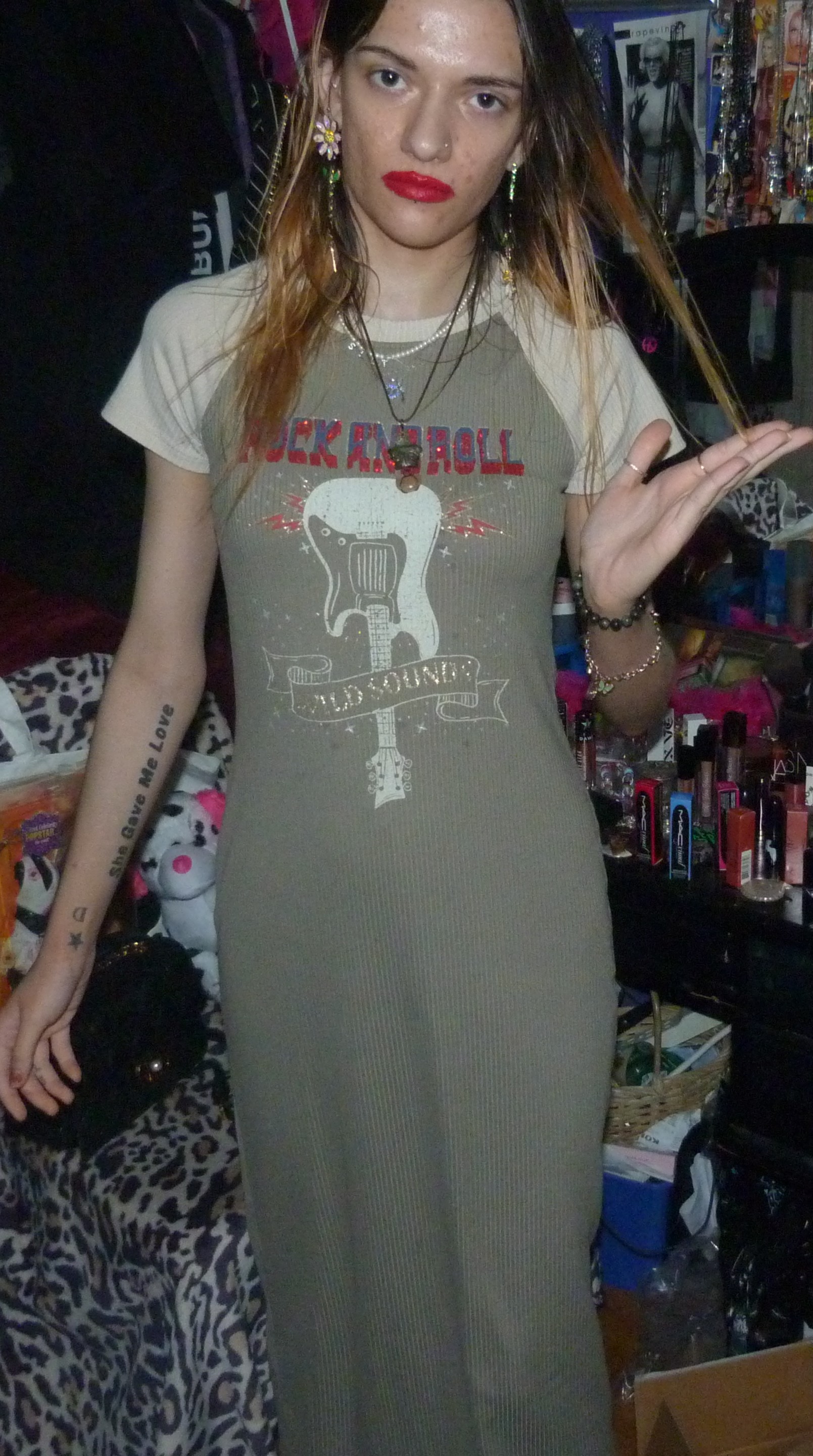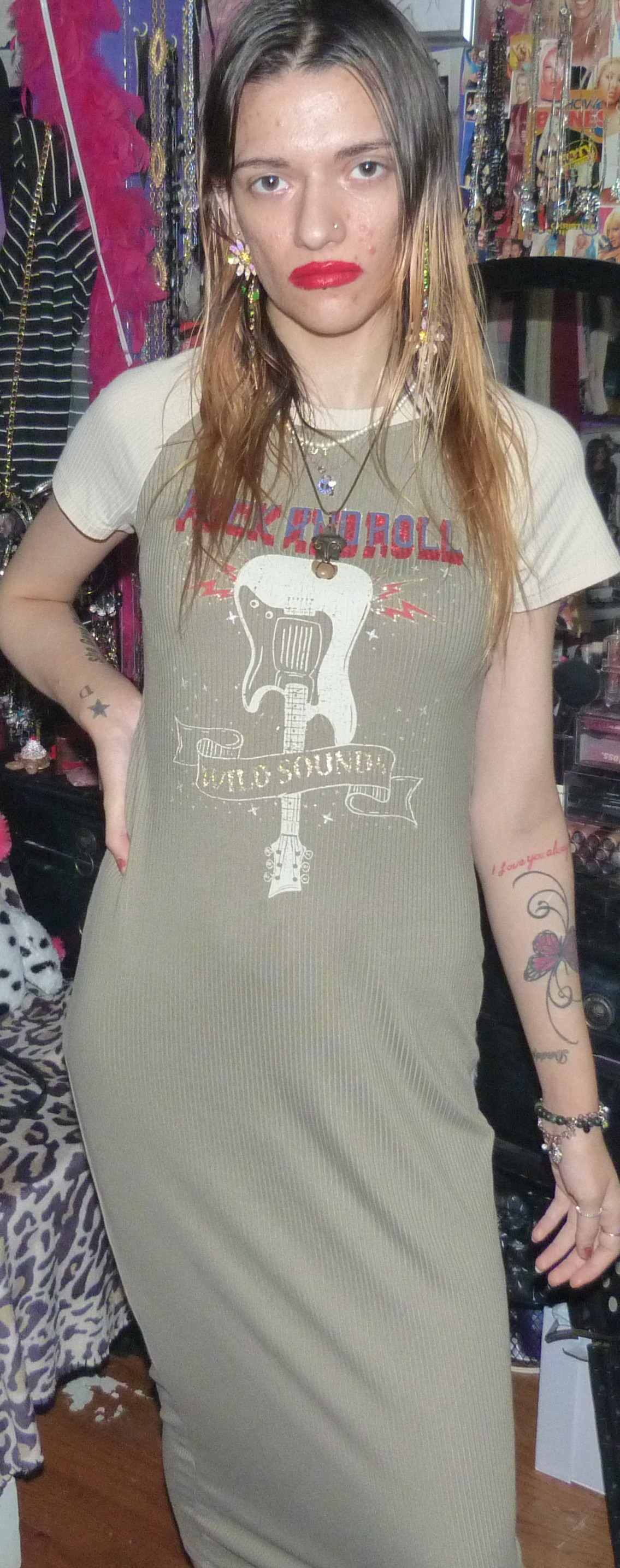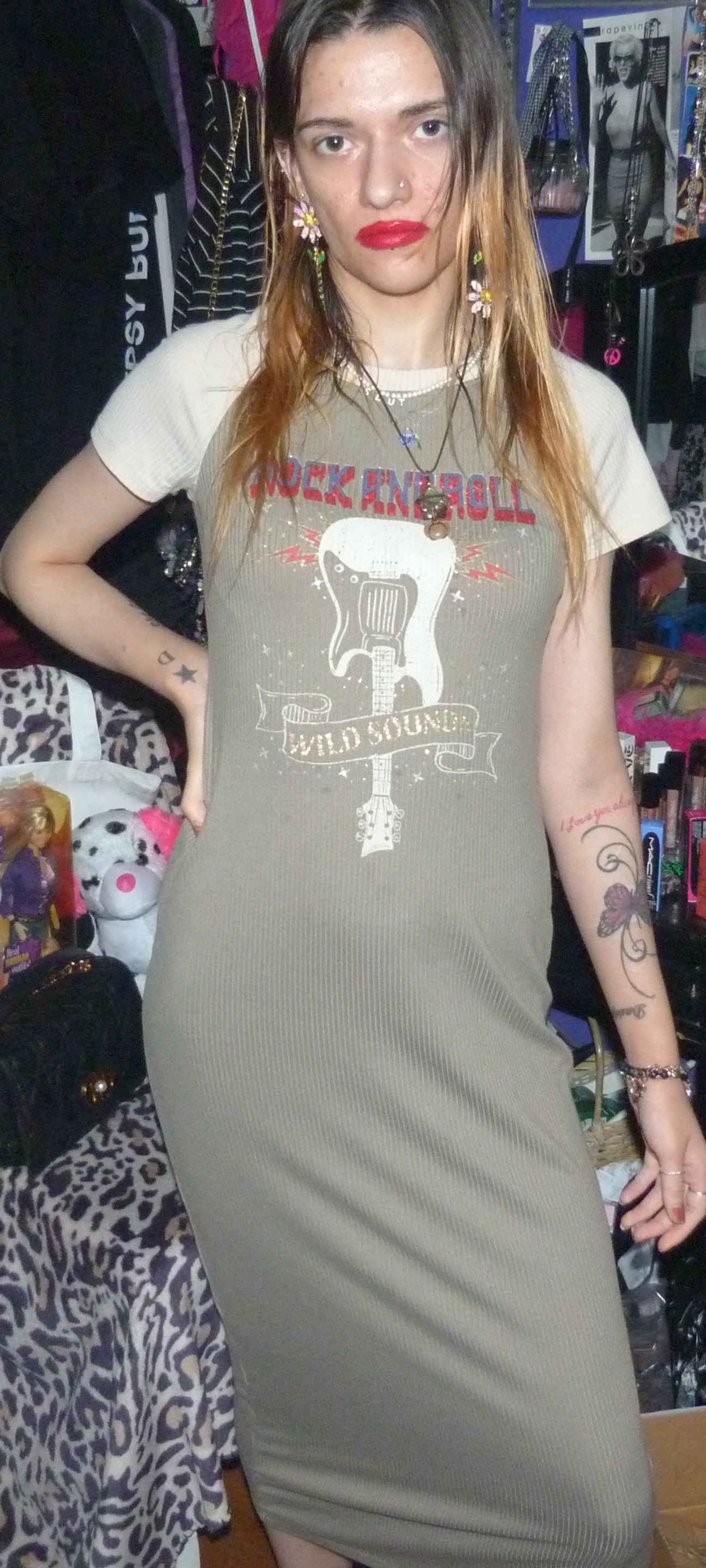 I GOT THIS CUTE MAXI-DRESS ON DEPOP, ANOTHER ONE FROM THE BRAND NO COMMENT! THIS IS A CUTE T-SHIRT DRESS THAT SAYS ROCK AND ROLL & WILD SOUNDS/GUITAR, ON IT.