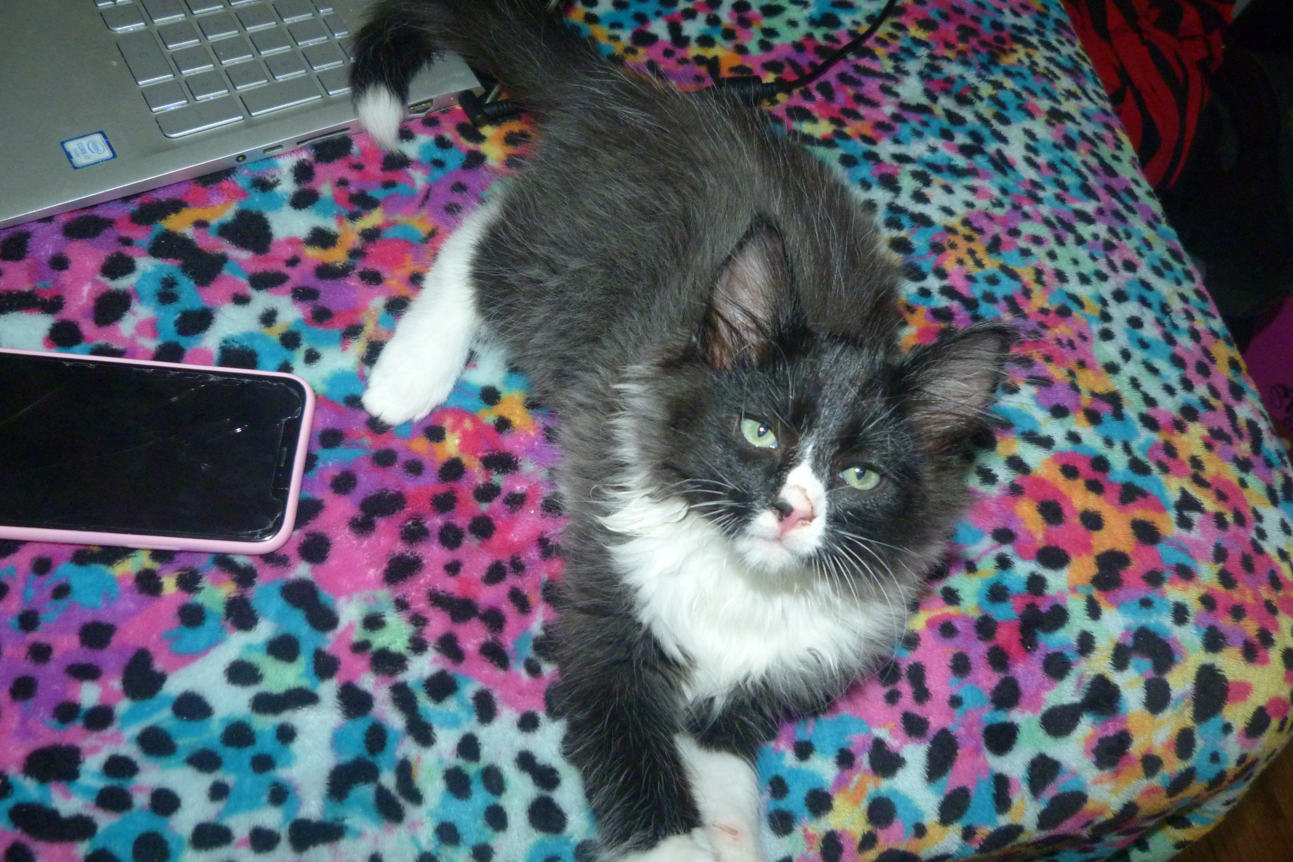 HERE’S THE PICTURES I’VE BEEN TAKING! HERE’S SPARKLE BELOW THE WHITE + BLACK KITTY.