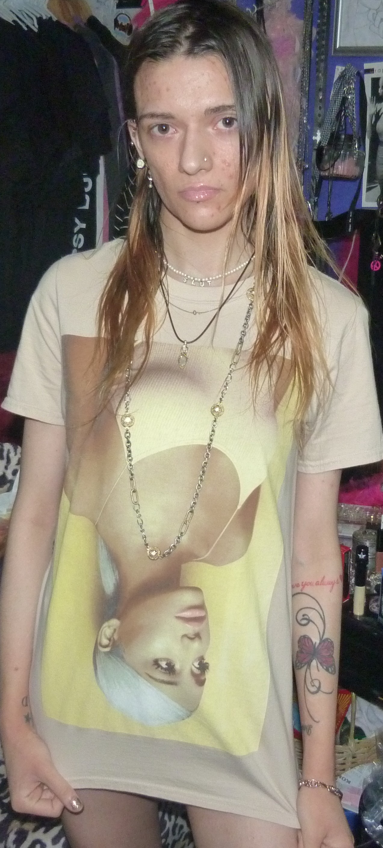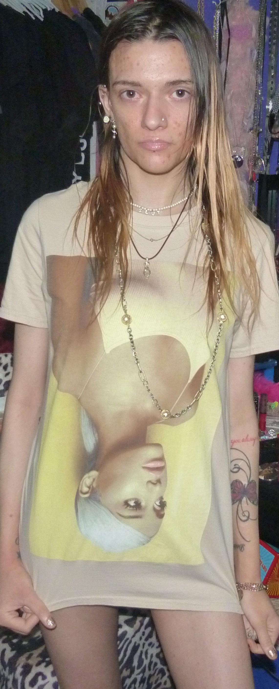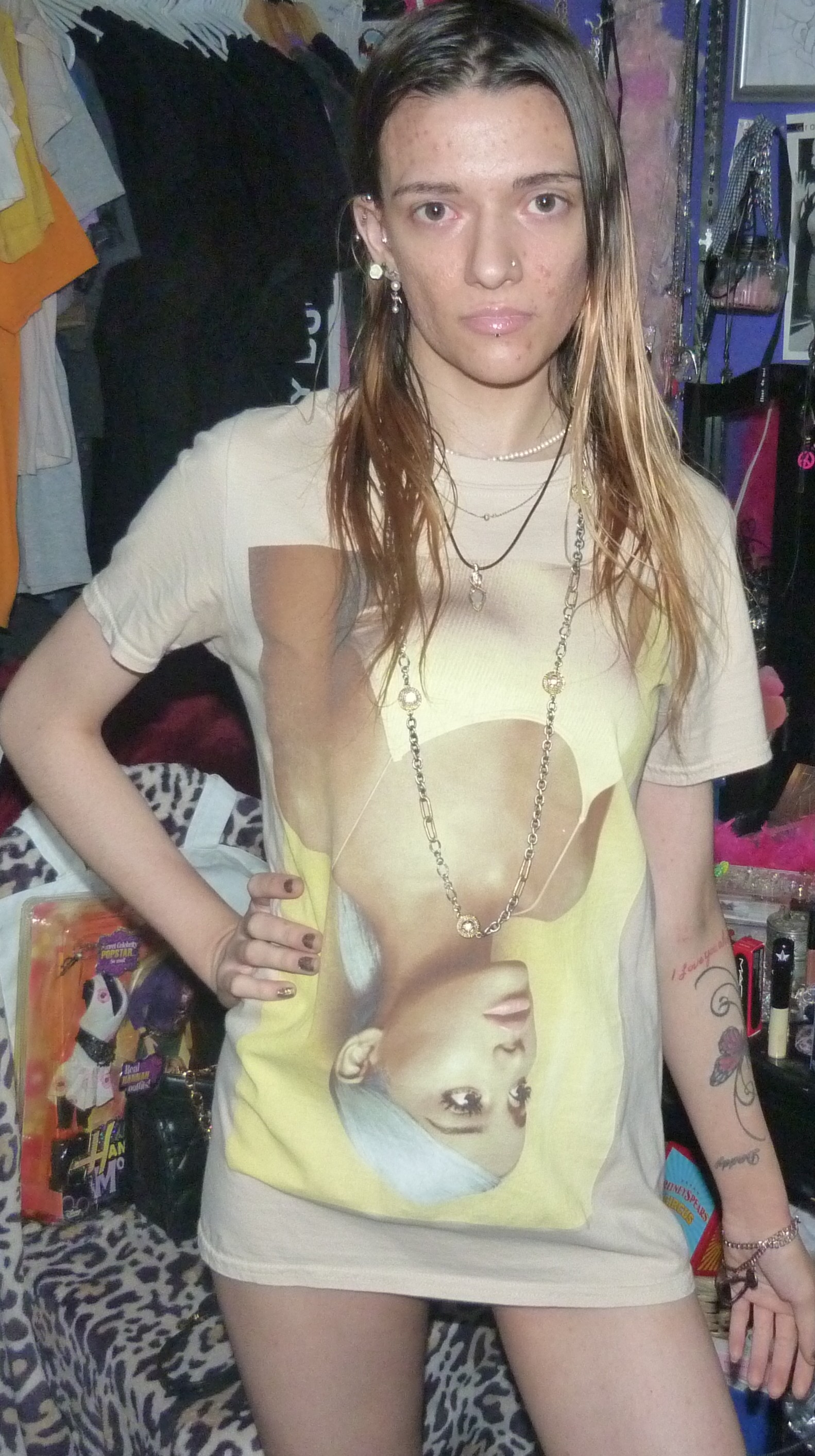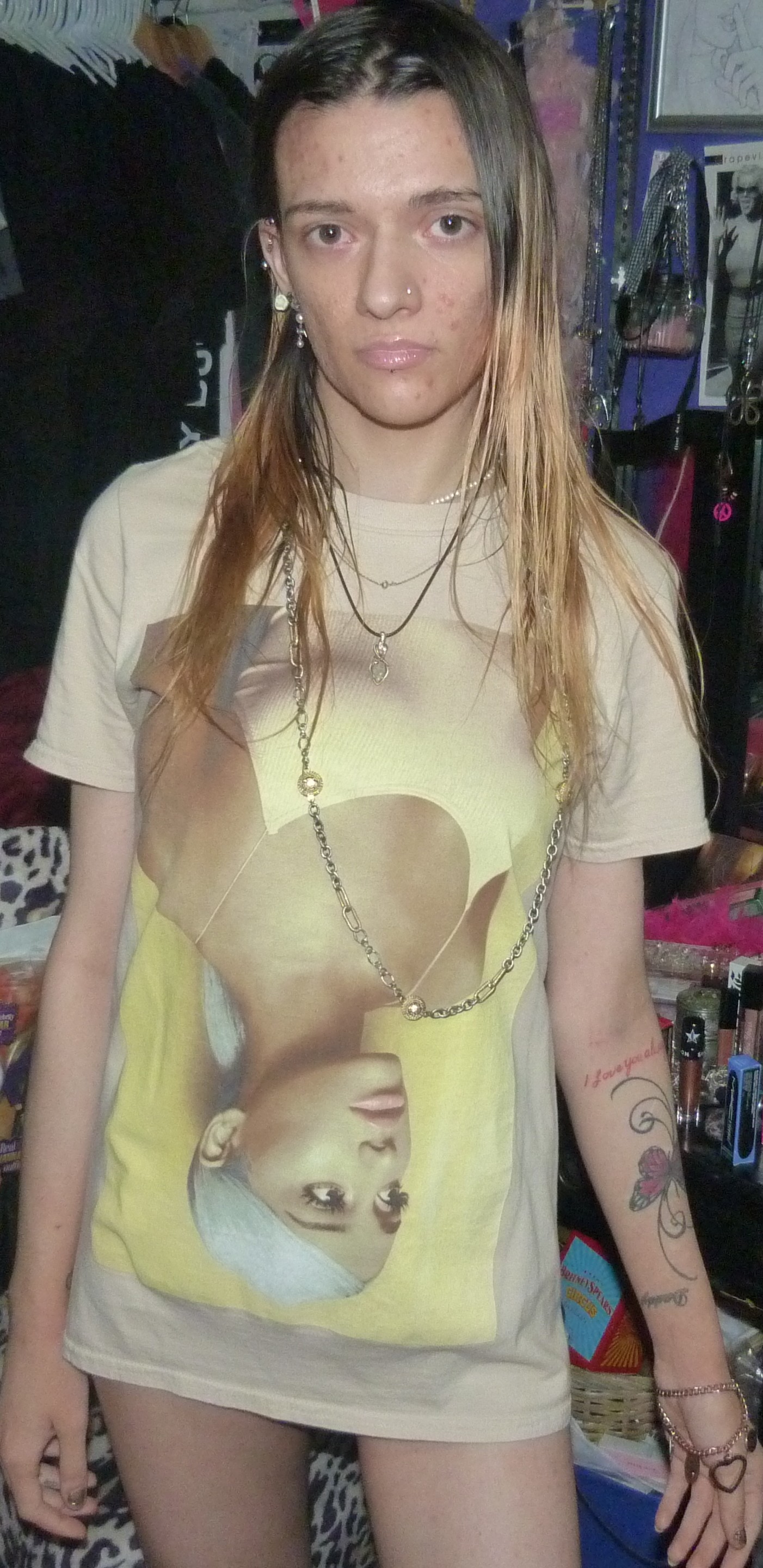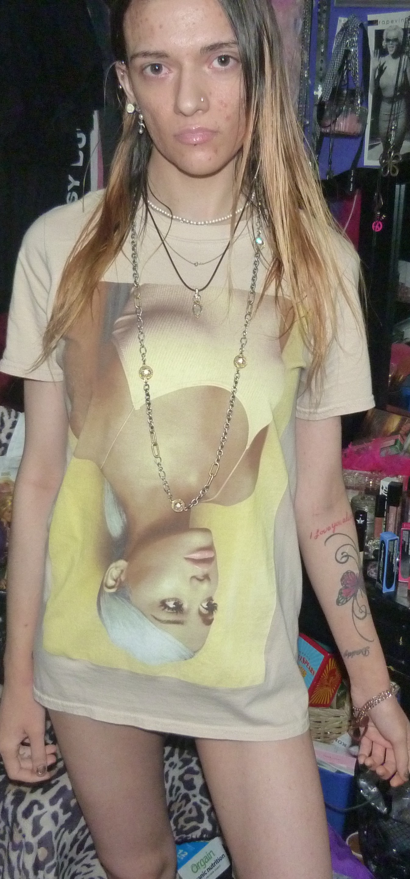 I WORE LIP GLOSS UNDERAGE LIPGLASS BY MAC COSMETICS WITH IT AND ARIANA GRANDE PERFUME WITH IT. THIS SHIRT IS SO CUTE, WITH ARI UPSIDE DOWN.+DADDY SWEETENER!