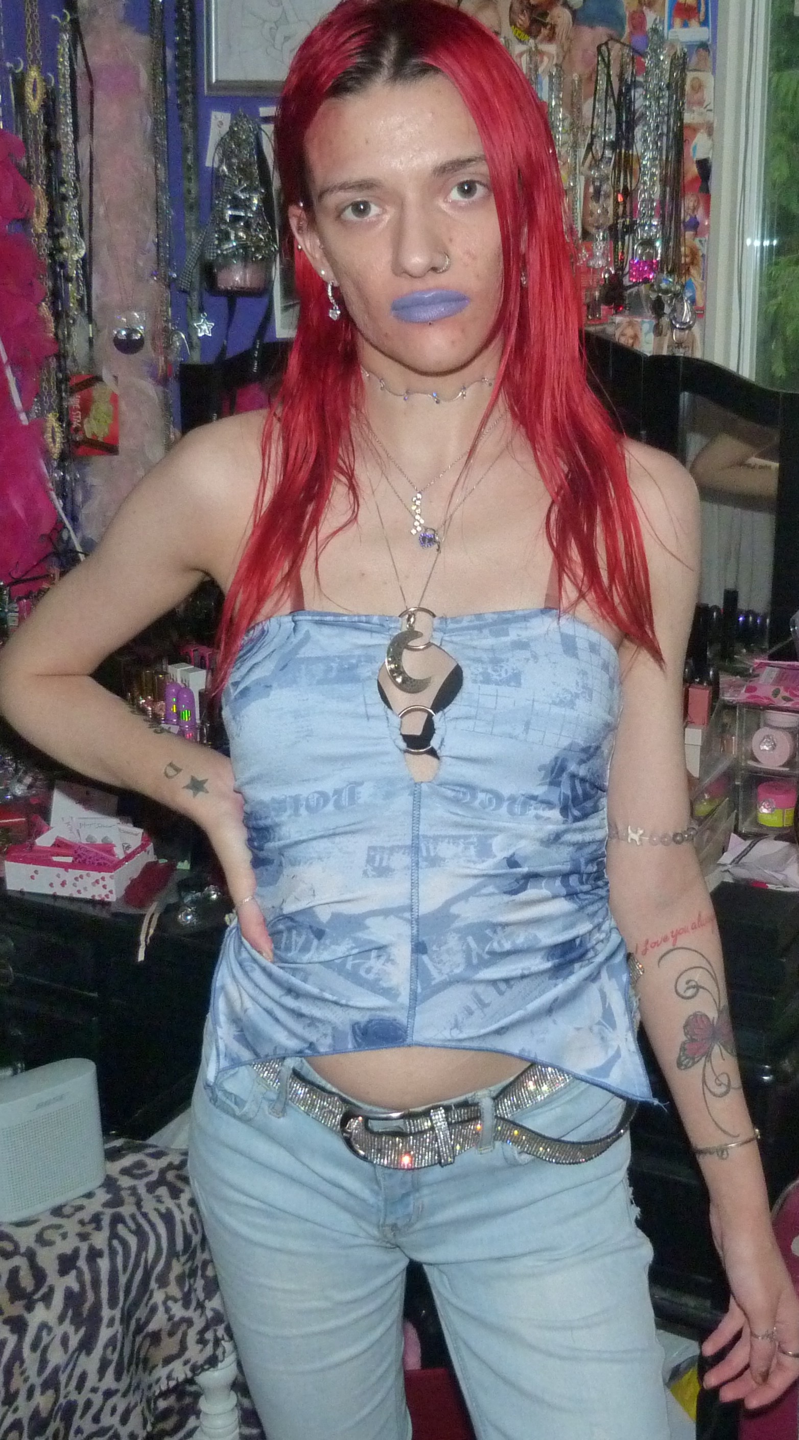 IT TURNED OUT REALLY GOOD. I USED TILTED DENIM LIPSTICK BY MAC COSMETICS, ON MY LIPS WHICH WAS HOT. I LOVE BLUE LIPSTICK, IT LOOKS SO GOOD. LET’S GET INTO A SHOOT!