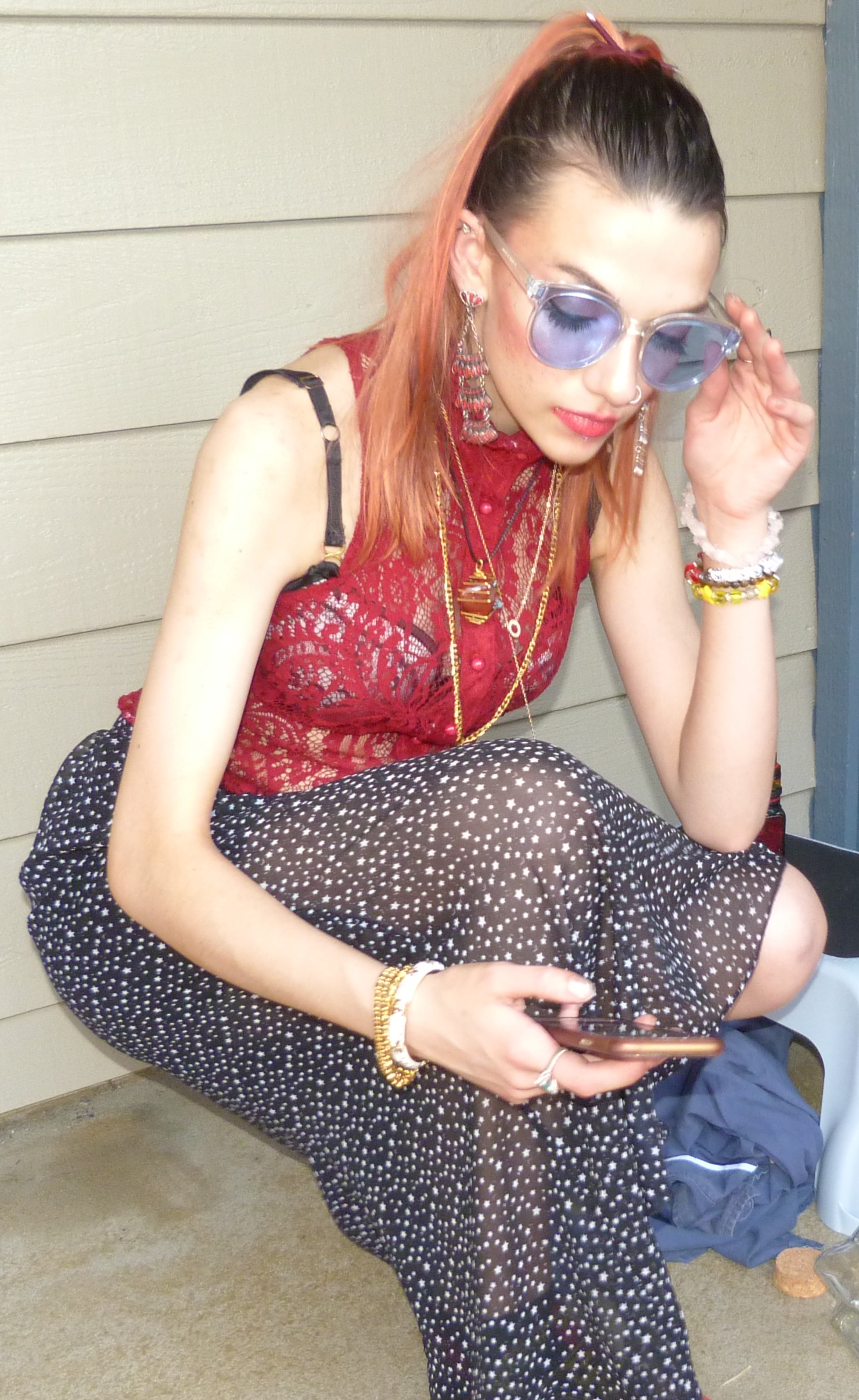 THIS IS A CUTE OUTFIT, I JUST GOT THE LIPSTICK, EVERYBODY’S HEROINE WHICH IS HOT, IT LOOKS GOOD ON ME. I CUT THIS SHIRT MYSELF + WORE MIDNIGHT FANTASY PERFUME!